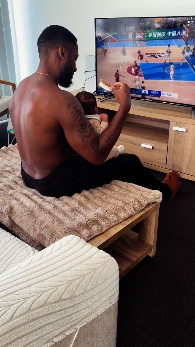 杰曼社媒晒带娃看自己CBA集锦时刻:平和&和孩子在一起的黄金时光