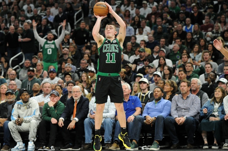 G5半场结束前4秒,普理查德替补登场。凯尔特人全队接到指示,要尽力将球交到他手中。在东契奇罚球不中后,霍福德抢下篮板,迅速寻找普理查德。虽然看到东契奇上前干扰,但霍福德知道这位全明星来不及封堵。普理查德告诉自己:把球投出去,给它一个机会。起初,他完全没有意识到周围正在酝酿的疯狂。