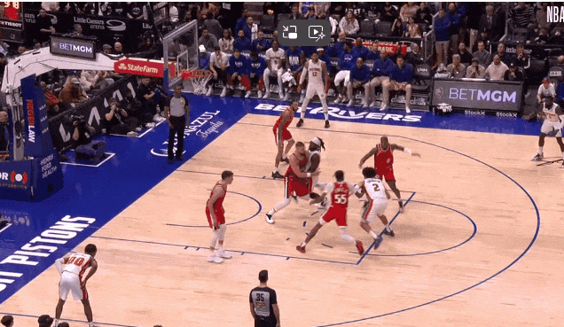 里夫斯头脑清晰地罚球和突破拉开分差,但独行侠不停投进怪球,维持气势:PJ的夹击中打三分,马绍尔包裹卢卡抄球,欧文反击得分。在独行侠的气势和身体接触下,卢卡和电风扇两个老达拉斯都有点懵。电风扇尤其古怪,就像: