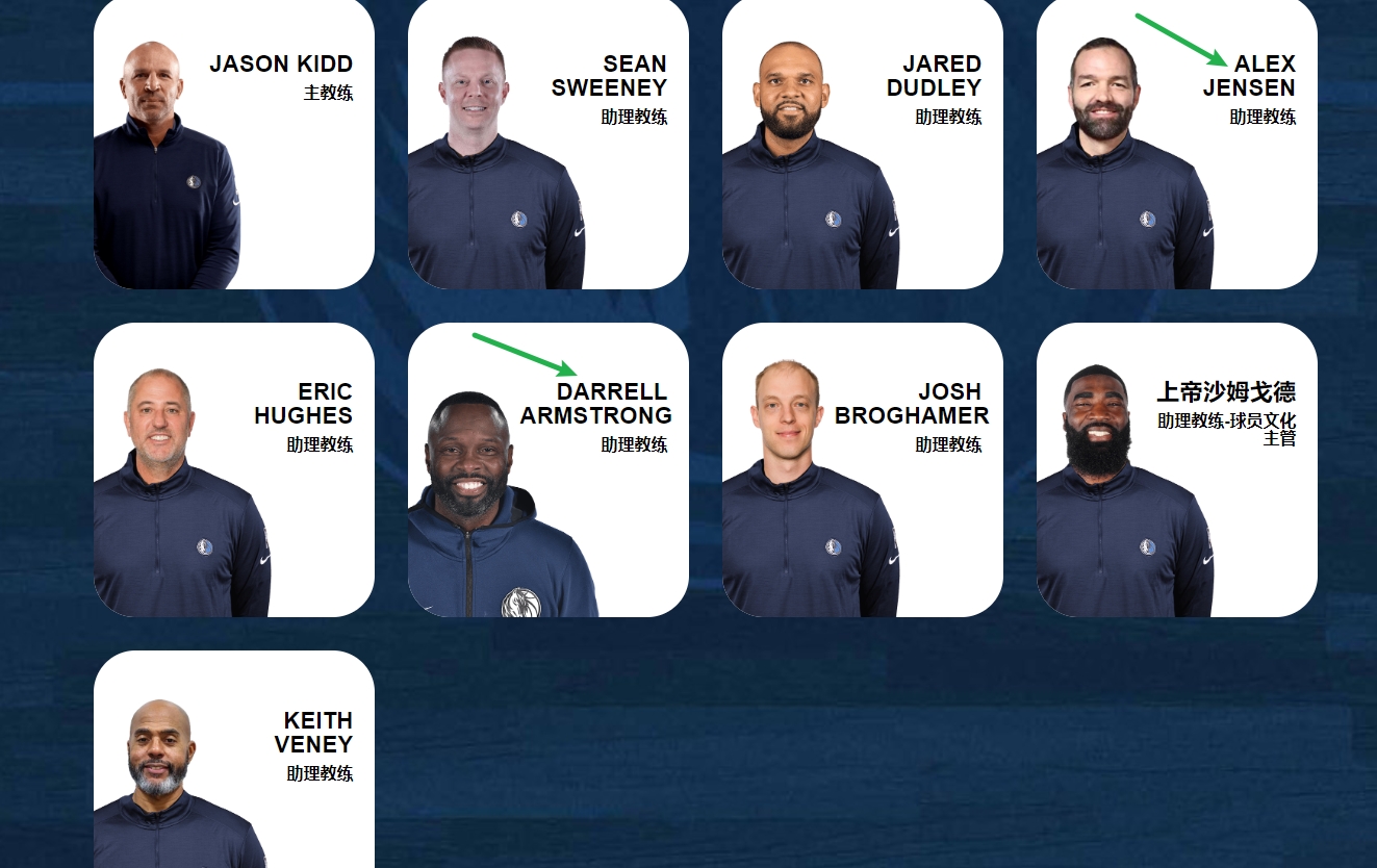 不仅如此,独行侠还丢了三个助教,第一个Marko Milic随着东契奇交易离队,第二个Darrell Armstrong因使用致命武器攻击他人而被捕并被停职,第三次则是Alex Jensen,他被犹他大学聘为主教练,不过将在本赛季后前往执教。
