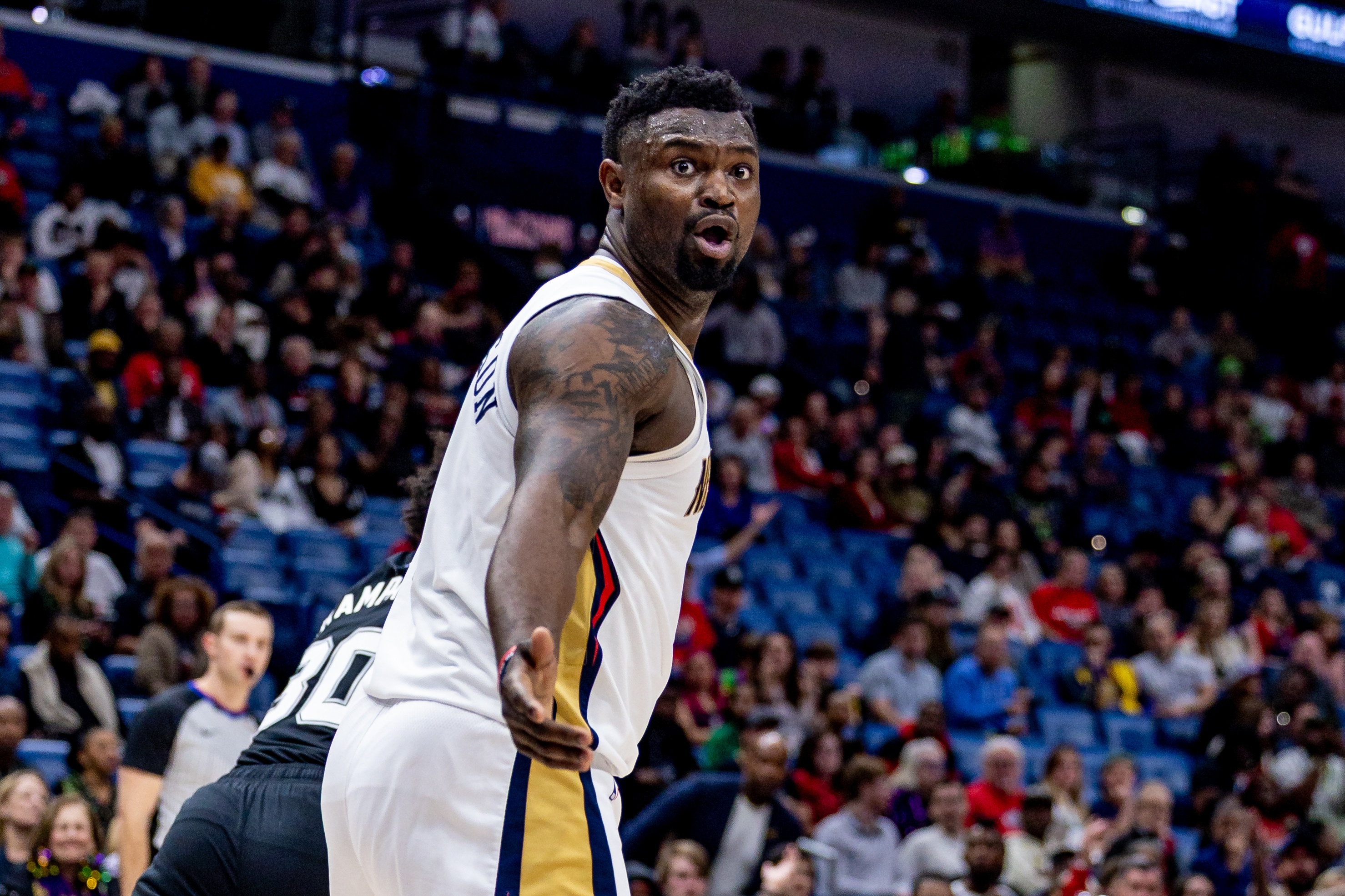 锡安砍下生涯第二个三双,他出战32分34秒,13投8中,罚球6中6,砍下22分10篮板12助攻(助攻生涯新高)1盖帽。