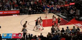 我们先看一下这一球之前的情况,是亨德森突破上篮出界,这一点很重要。