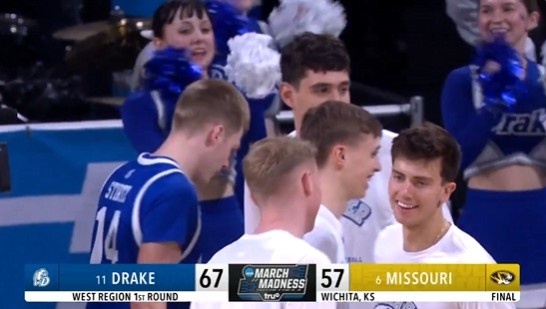 3月21日讯 NCAA疯狂三月64强赛,分区11号种子德雷克大学67-57爆冷击败6号种子密苏里大学。