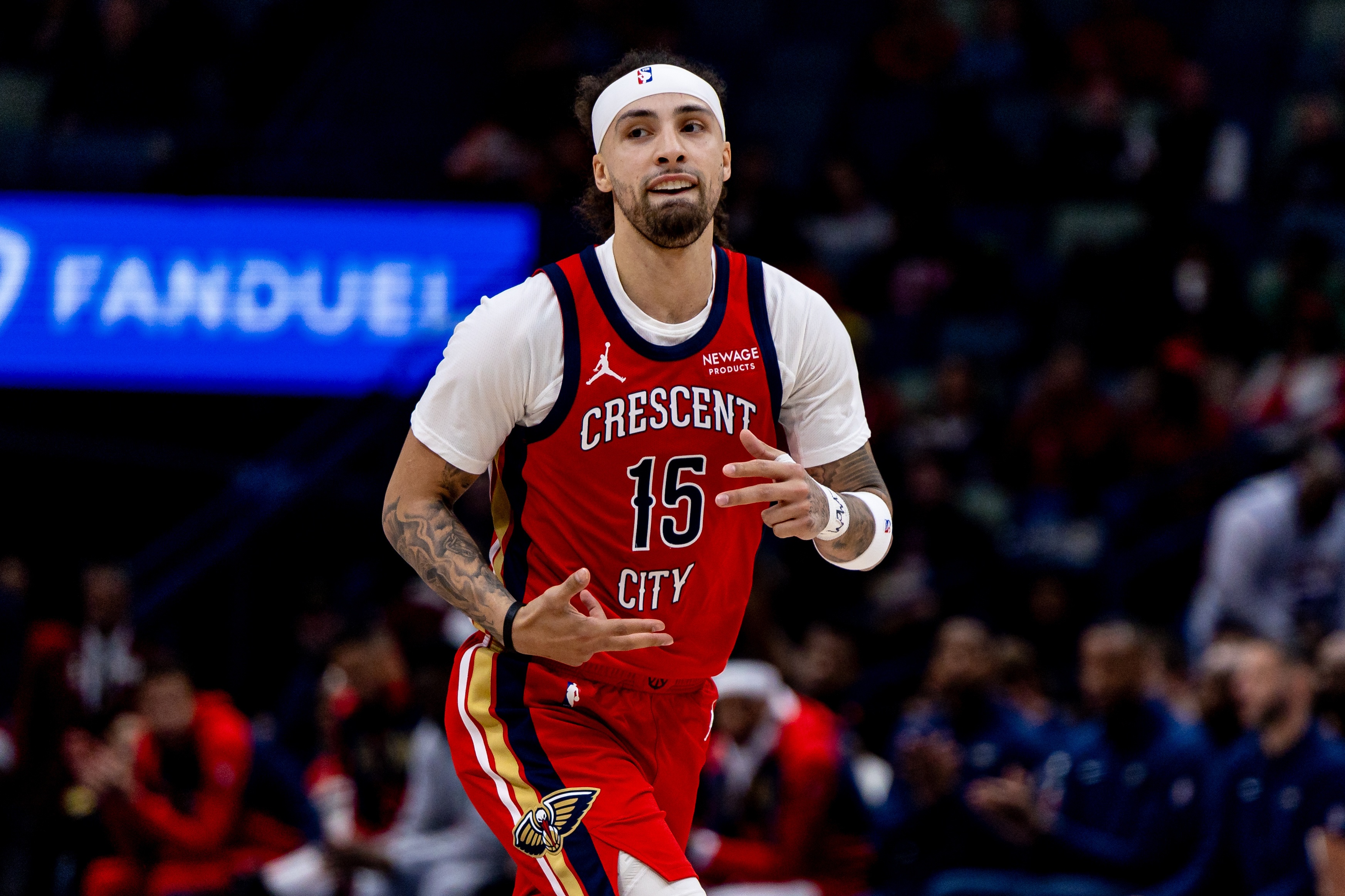 比赛最后时刻他打进关键2+1,帮助鹈鹕在最后30秒反超两分,拿下比赛。