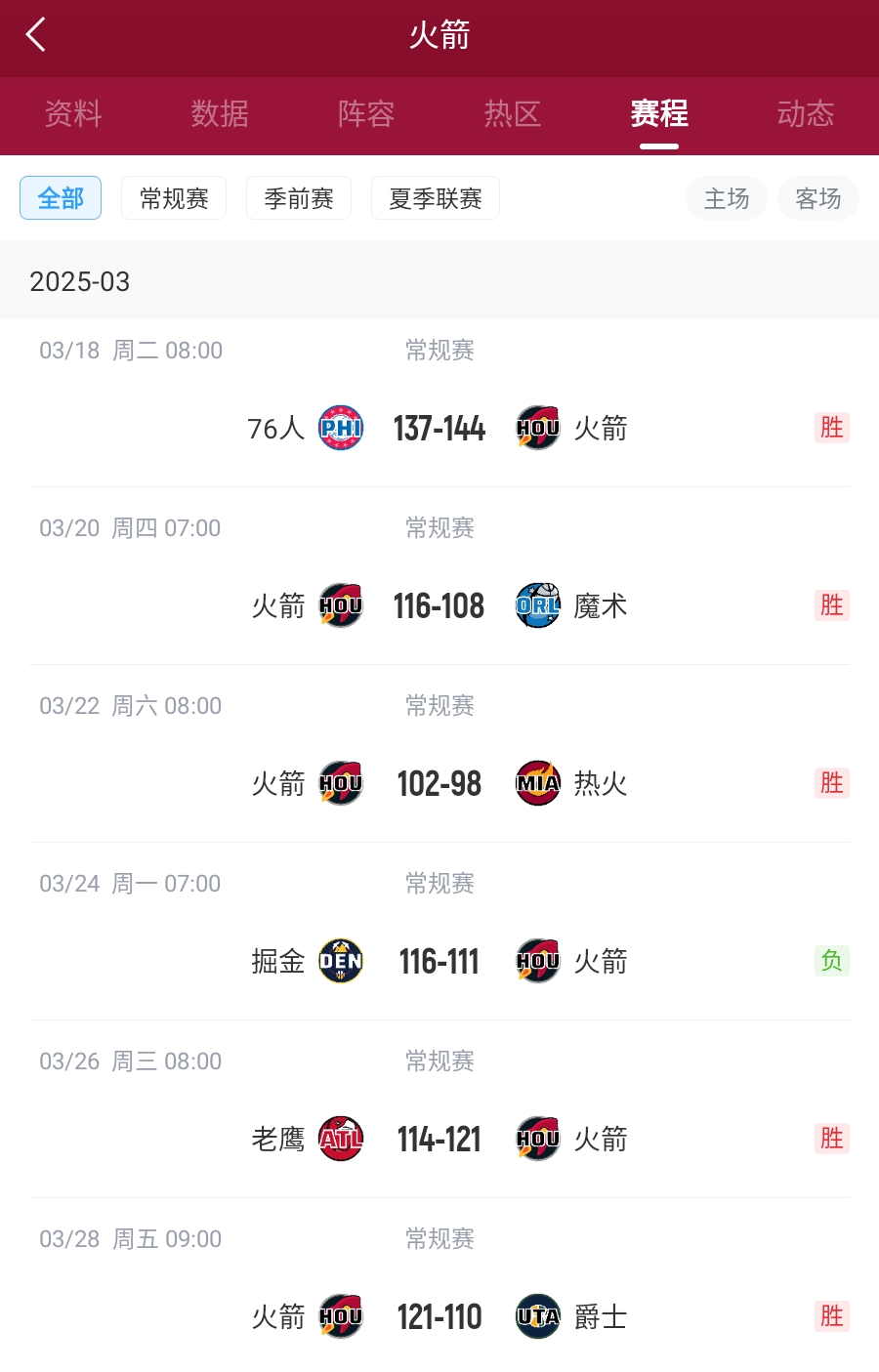 火箭近14场比赛仅输掘金&湖人未来将战雷霆&勇士&快船