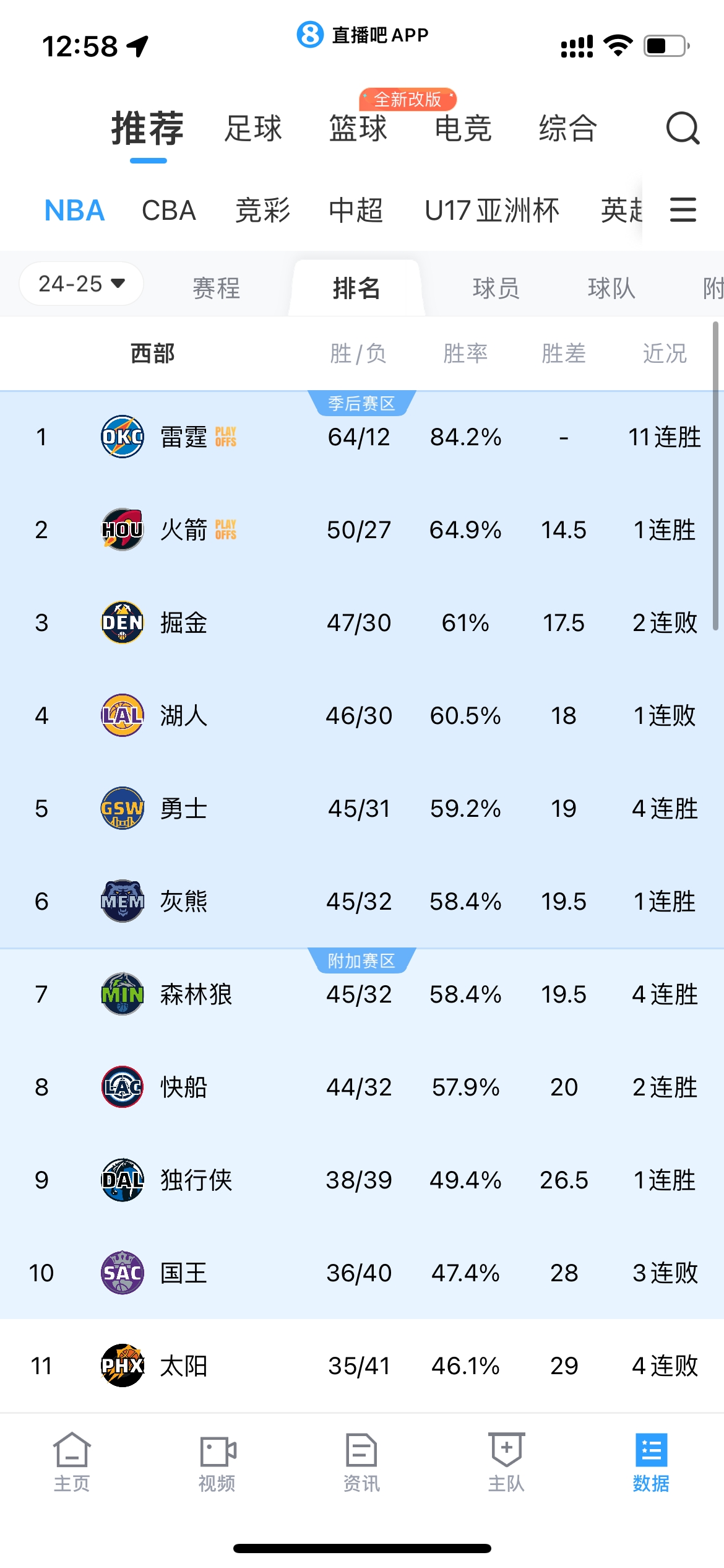 勇士今天还帮了第三掘金的忙,让掘金领先湖人半个胜场坐在第三;