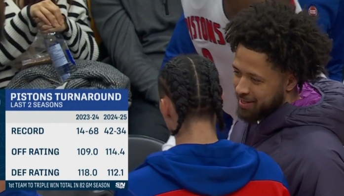 本赛季,活塞还剩下6场比赛,胜场数较上赛季已经提升28场。球队场均得分由109.0分攀升至114.4分,防守端失分由118.0分降至112.1分。