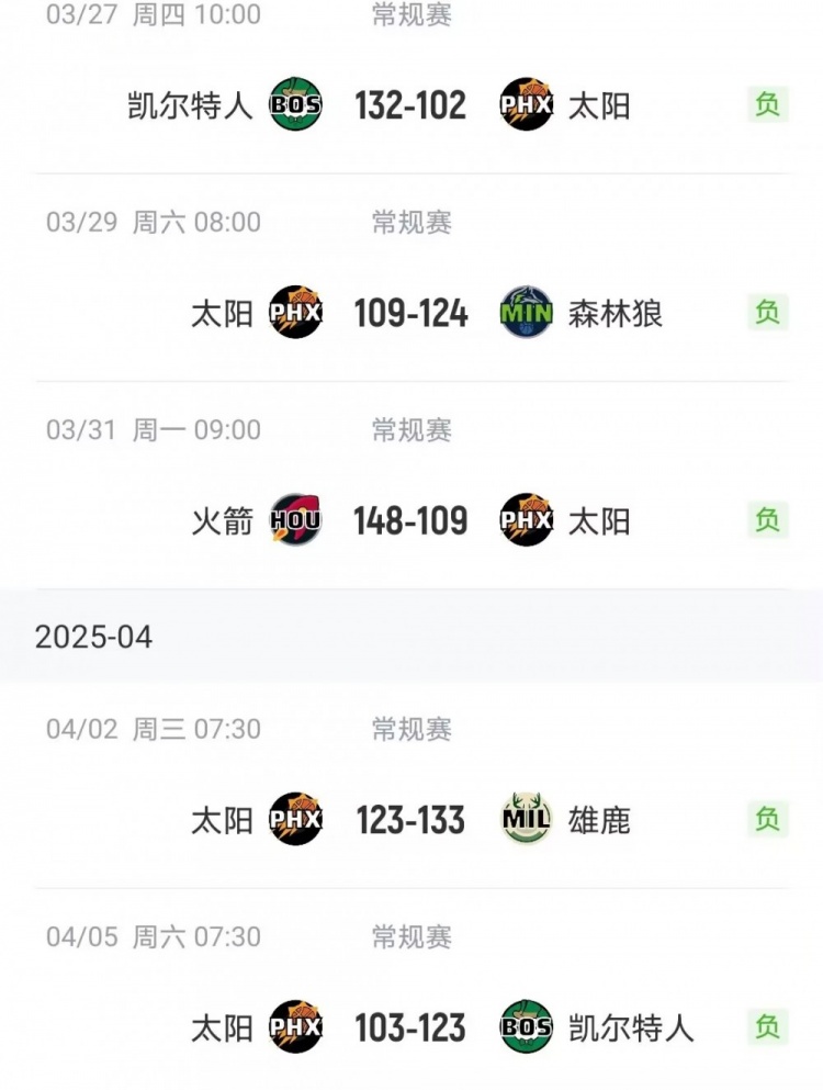 4月6日讯 太阳昨天以103-123不敌凯尔特人,遭遇5连败。