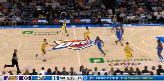 04月09日讯 NBA常规赛,湖人120-136不敌雷霆。