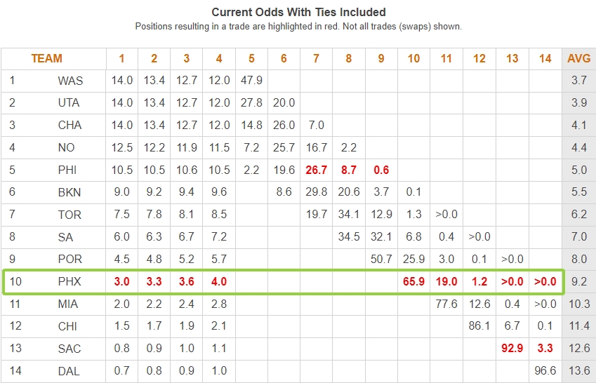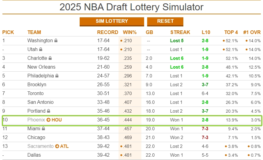 太阳倒数第十!火箭抽前四签概率13.9%3%可能抽状元签