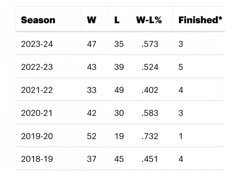 据统计,单赛季61%的胜率创下了詹姆斯湖人生涯第二高,仅次于2019-20夺冠赛季(73.2%)。