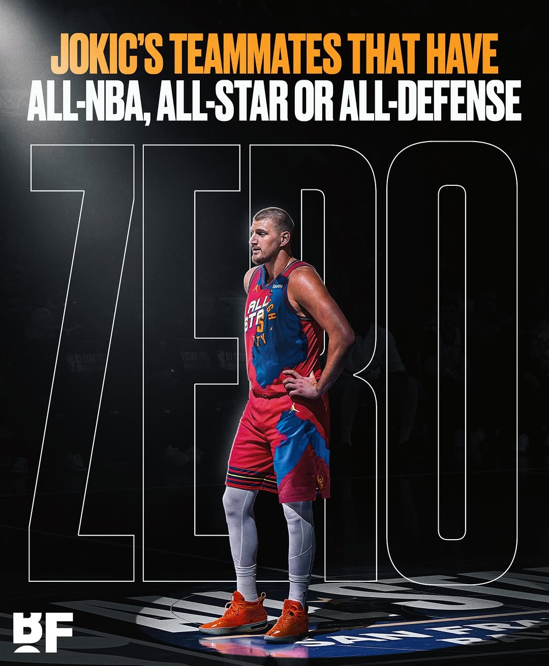 约基奇进NBA10年从未有任何一位当赛季的全明星最佳阵队友