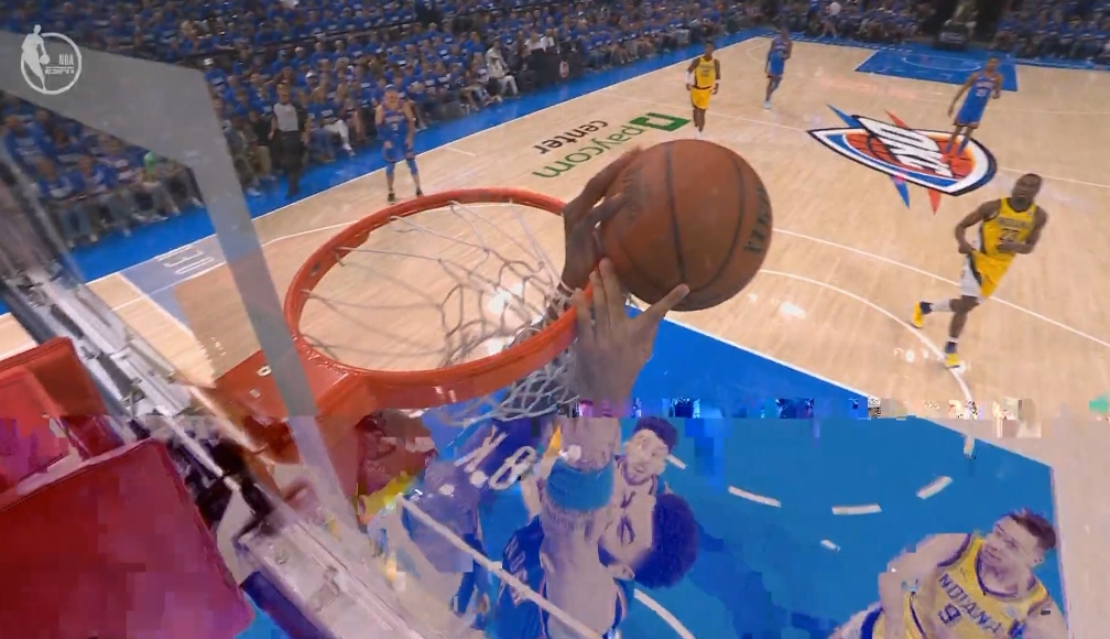 这也行托布从篮筐里伸手封盖肯威本该吹干扰球但裁判无视