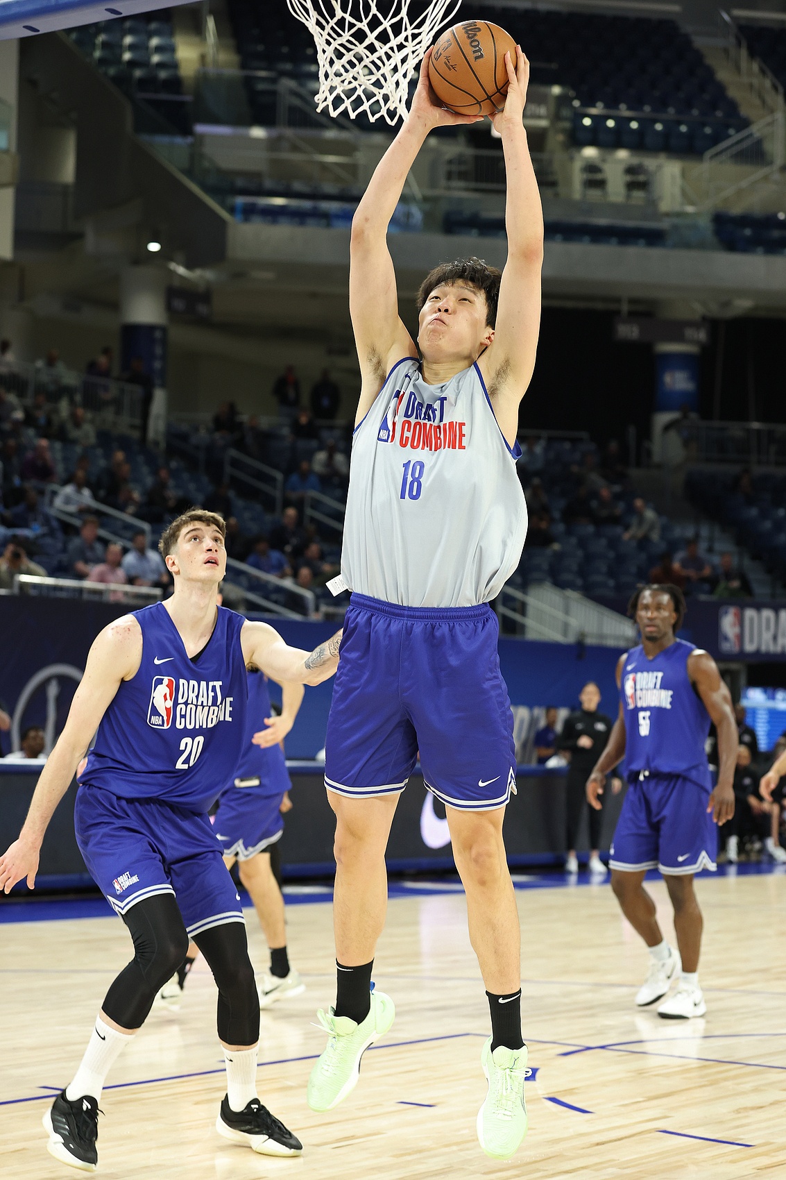 06月18日讯 据魔术记者、Rookie Wire撰稿人Cody Taylor报道,中国男篮新星、青岛队中锋杨瀚森今日参加了猛龙的试训。