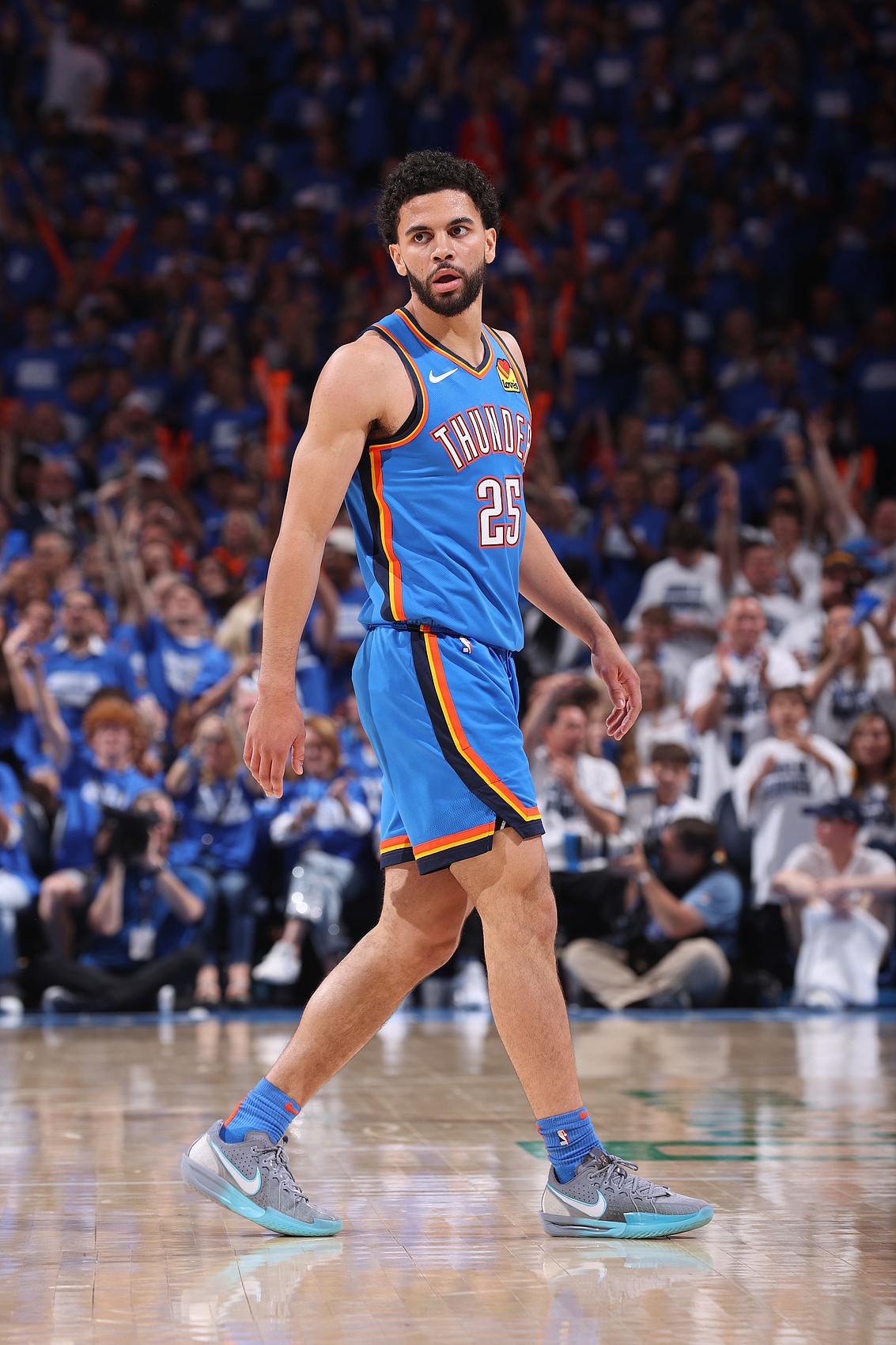 本场比赛,雷霆球员阿杰伊-米切尔表现不错,场上很全能,在26分钟的时间里,投篮14中6,三分球4中2,罚球7中5,拿到19分5篮板8助攻2抢断的数据,不过有5次失误,正负值+8。