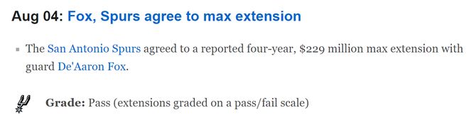 ESPN对这次续约的评级是通过(续约协议采用“通过/不通过”评级标准)。