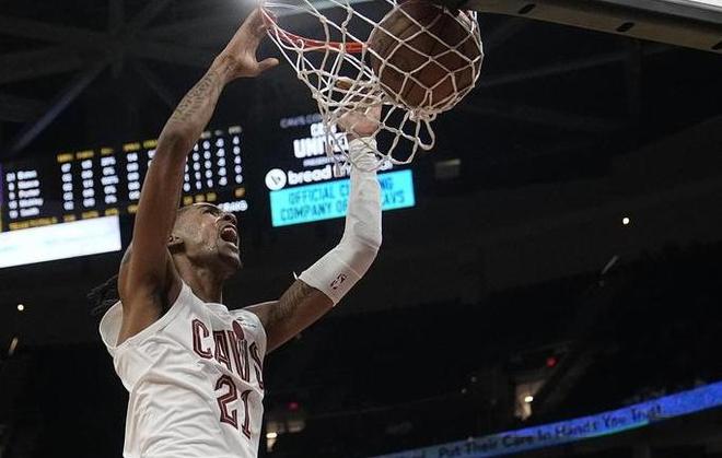 埃莫尼-贝茨今年21岁,身高2米03,司职小前锋/得分后卫,2023年NBA选秀被骑士用次轮49号签选中。贝茨天赋异禀,是第一位在高二就获得佳得乐年度最佳球员奖的男运动员,曾在多家媒体的全美高中排名中排在前五,是全美最好的小前锋。在之前的球探报告中,贝茨被视为神射手雷吉-米勒的模板,他在场上任何位置都可以得分,同时,他还是出色的控球手,传球能力稳定,基本功非常扎实。22-23赛季,贝茨代表东密歇根大学出战30场比赛,场均33.8分钟可以砍下19.2分5.8篮板1.4助攻。