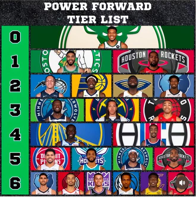 近日,美国媒体NBA.nijia为现役大前锋进行了分档,美媒分了六个档次,因为杜兰特这几个赛季都是打四号位,所以这里杜兰特还是以PF身份出现,新赛季他重返三号位的话明夏的分档应该会