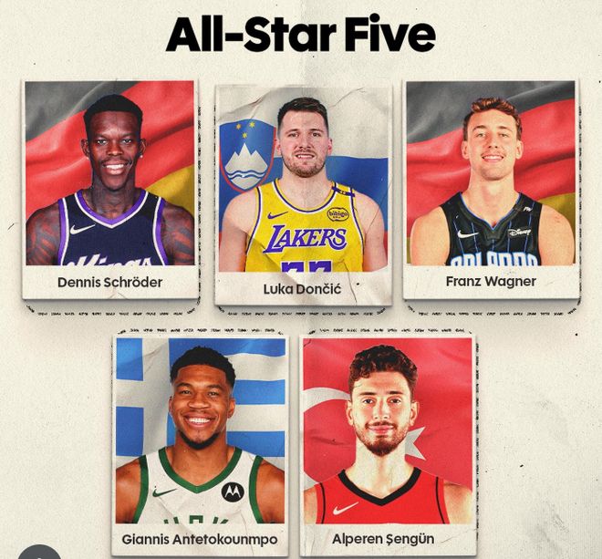消息人士称,赛事期间曾出现这样一幕:圣让将一段剪辑好的东契奇防守集锦播放给斯洛文尼亚队主教练亚历山大-塞库利奇看。圣让认为,除了进攻端的卓越表现,东契奇也是球队中最出色的防守球员。这段集锦一帧一帧地展示了东契奇在防守时的站位选择、与队友的沟通配合,以及全身心投入的态度。