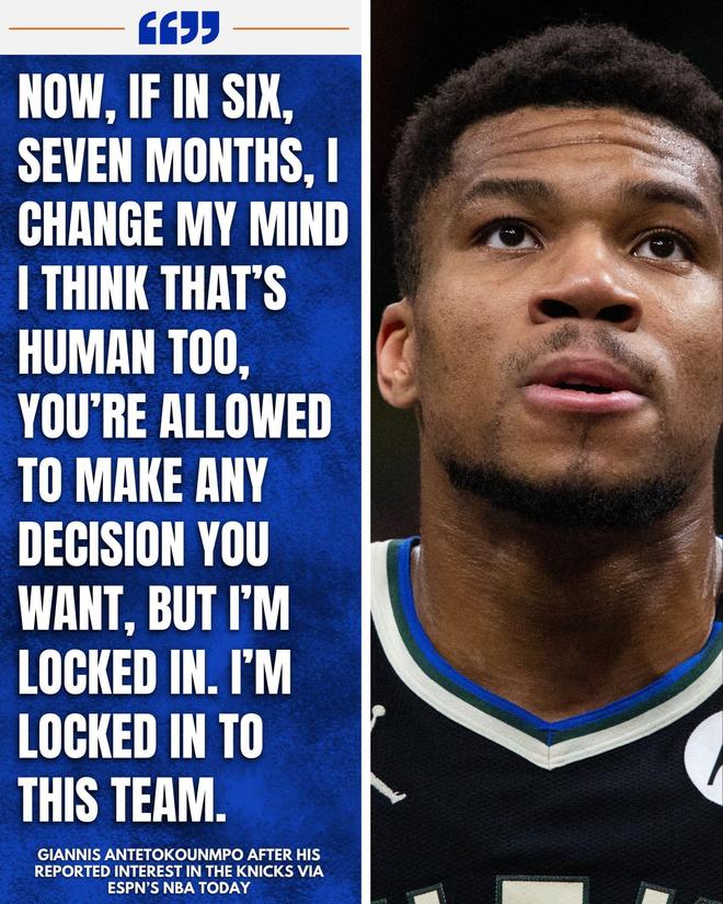 北京时间10月9日,美国媒体NBA Central转发了扬尼斯接受ESPN专访的片段,字母哥在采访中回应了交易流言的一些细节,我目前专注于雄鹿,如果6-7个月后我改变主意也是人之常情。扬尼