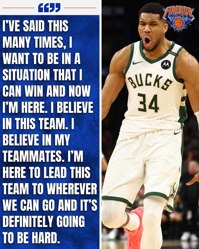 扬尼斯详细的言论是:我已经谈过很多次交易流言这个话题,我希望自己处在一支能竞争总冠军的球队中,现在我在雄鹿打球,我相信我们的球队与队友,我会带领这支球队冲击总冠军虽然这很艰难。
