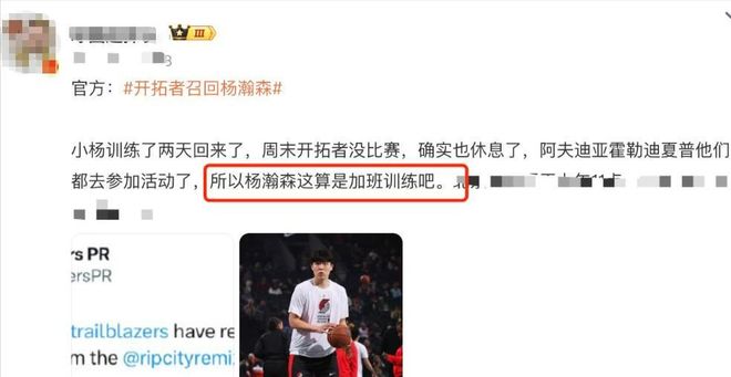 后来球队跟队记者出来解释,说这主要是为了让他多参加训练。