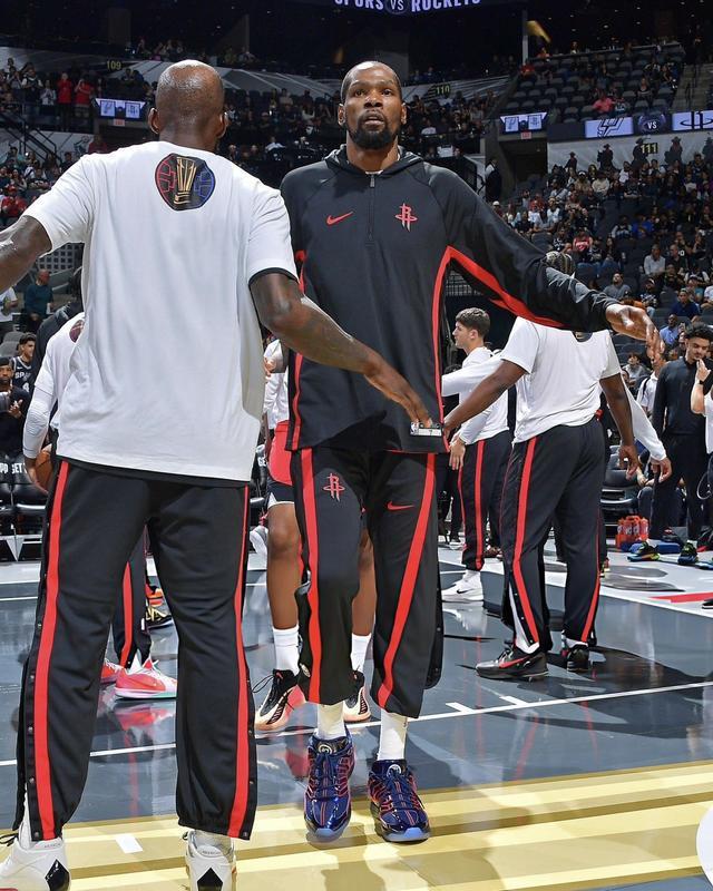 北京时间今日,在NBA杯的比赛中,休斯顿火箭队在客场110-121不敌圣安东尼奥马刺队,五连胜遭到终结。本场比赛,火箭队球星杜兰特首次上脚耐克KD 18 PE巴黎圣日耳曼联名款球鞋出战。