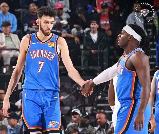 雷霆上一场比赛124-112击败了热火,亚历山大贡献了29分8次助攻,霍姆格伦16分10个篮板,杰威18分,阿杰·米切尔16分。