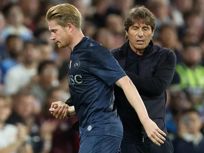 本周欧冠联赛阶段抽签结果令德布劳内获得重返伊蒂哈德球场的机会。今年夏天,为曼城效力十年并成为俱乐部传奇的他未获续约合同,最终自由转会至那不勒斯。然而,这场备受瞩目的重逢却因队友迪洛伦佐开场不久的红牌戛然而止。为填补防守空缺,孔蒂被迫用边后卫奥利维拉换下德布劳内。