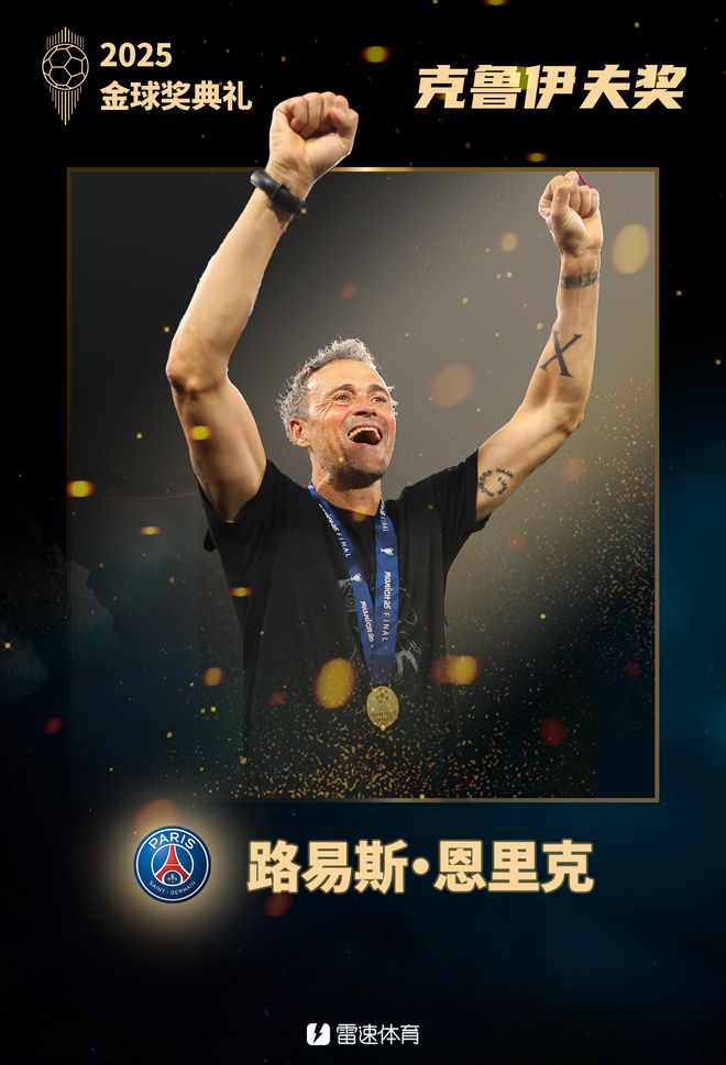 雷速体育9月23日讯 2025年金球奖颁奖典礼今天进行,巴黎主帅恩里克获得2025年克鲁伊夫奖,即年度最佳男足教练。恩里克上赛季带领巴黎夺得欧冠冠军、法甲冠军、法国超级杯冠军