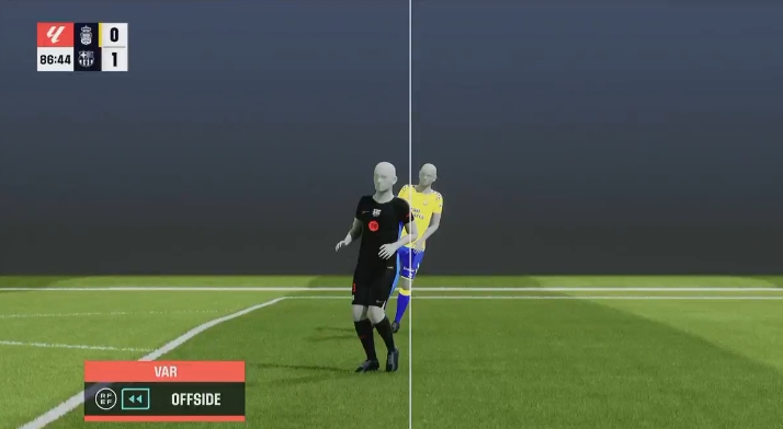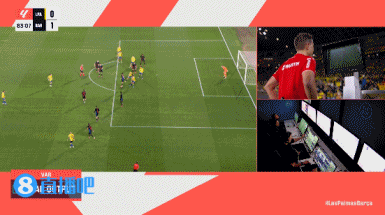 加西亚禁区内手球,VAR介入判定对方越位在先