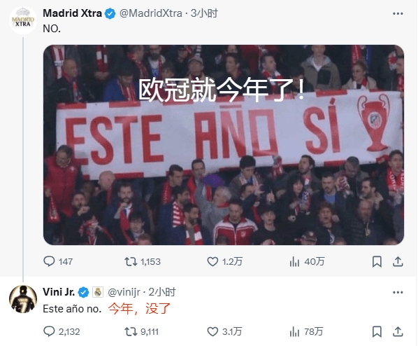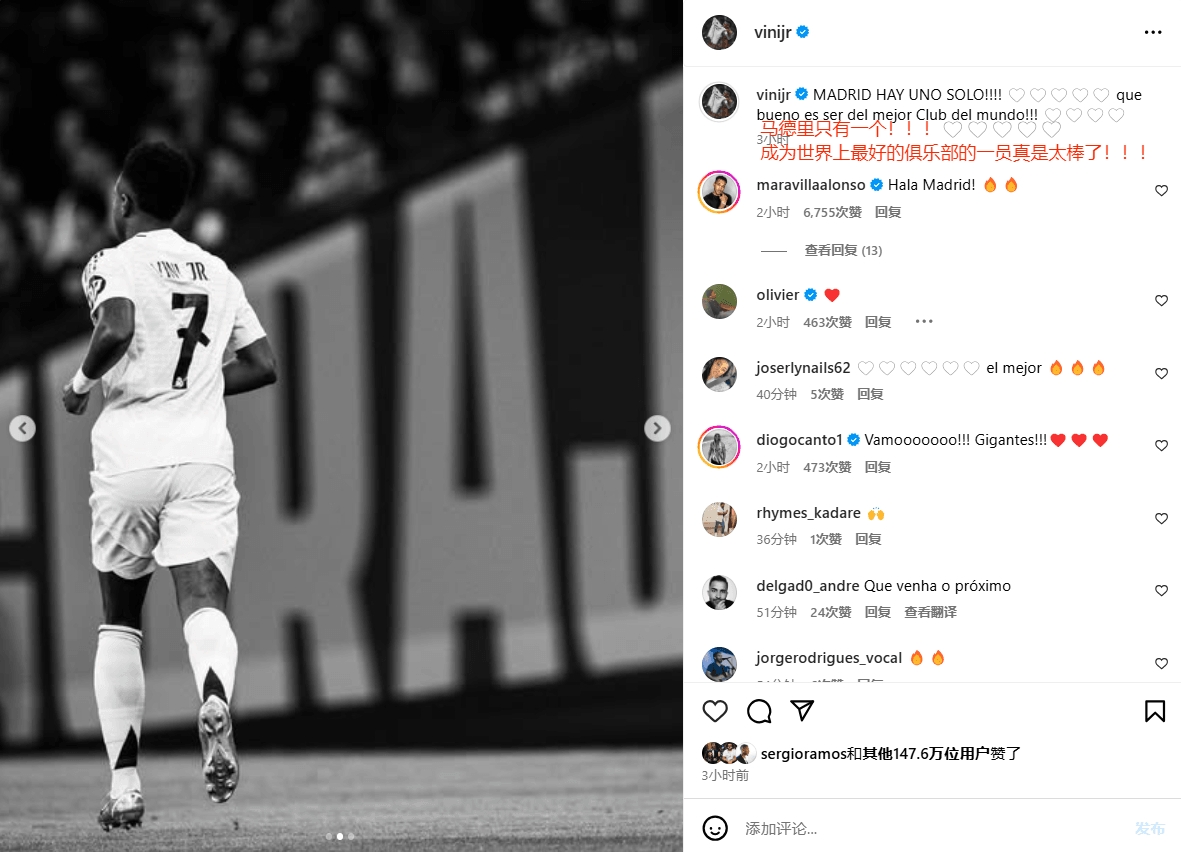 欧冠1/8决赛次回合,皇马通过点球大战淘汰马竞。赛后维尼修斯在社媒连续更新4条动态(推特3条,ins1条)。
