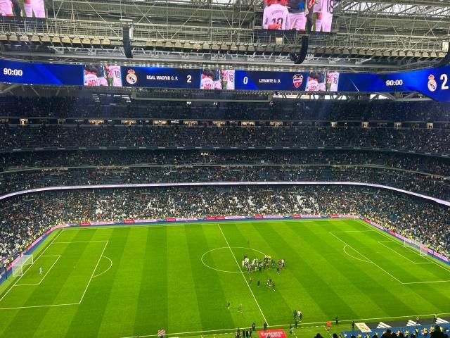现场的巨大嘘声之下,皇马众将在上半场面对积分榜排名第19位的莱万特,也并未表现出更胜一筹的硬实力,前场的维尼修斯等人被嘘到无法全力投入进攻,中后场也被球迷嘘声影响到失误频频,并让莱万特打出几次快攻,还在禁区前沿数次造成皇马球员的犯规后获得位置极佳的定位球。整个上半场比赛皇马基本没有制造出绝佳机会,伯纳乌球迷也在半场结束时将更加持久且响亮的嘘声撒向场内。上半场唯一得到球迷掌声的是小将贡萨洛,皇马16号本场表现一如既往积极和努力,但出现在右边锋位置上的他对进攻端几乎没有起到任何作用,也在下半场伊始便被替换下场。