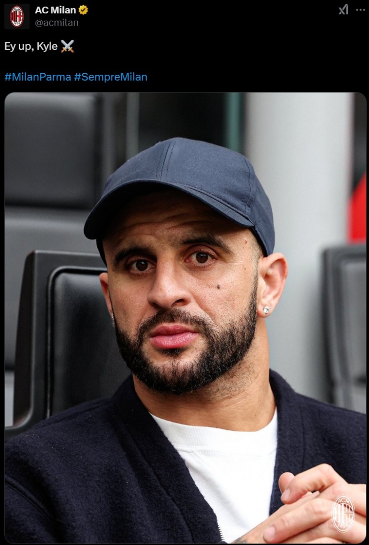 1月26日讯 本轮意甲AC米兰迎战帕尔马,米兰新援沃克在现场观战。米兰官推也晒出沃克现场照片,配文写道:“你好啊,沃克。”