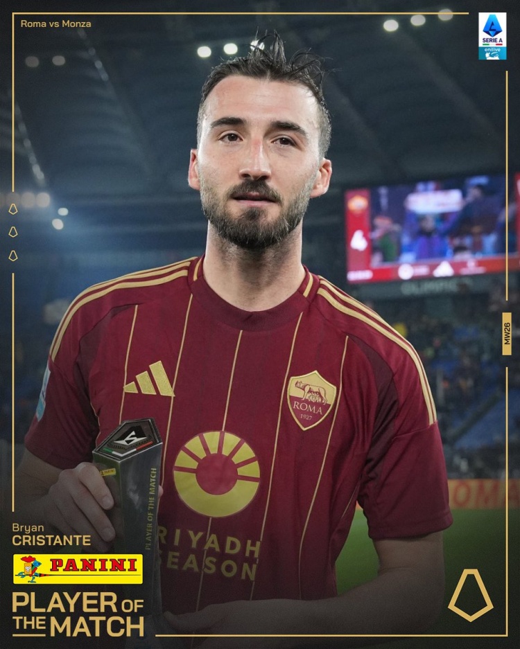 2月25日讯 在罗马4-0蒙扎的意甲联赛中,罗马中场克里斯坦特当选全场最佳球员。