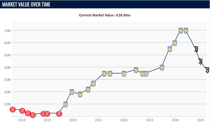 03月26日讯 昨日德转更新意甲球员身价,去年夏窗转会至尤文的道格拉斯-路易斯身价再次下跌,仅剩3800万欧,而他在去年从维拉转会至尤文时,身价还高达7000万欧。尤文在去年夏天花费