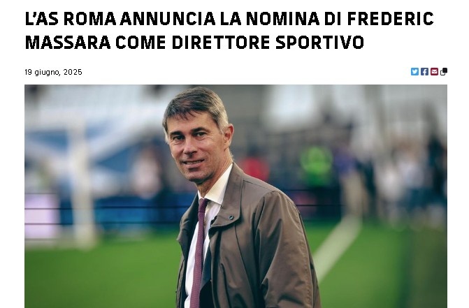 6月19日讯 罗马宣布宣布,弗雷德里克-马萨拉出任俱乐部体育总监。