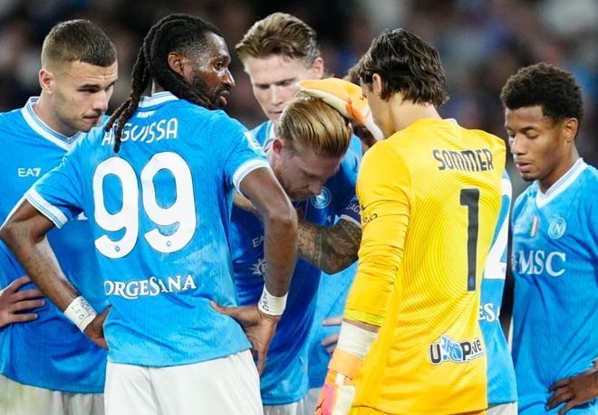 那不勒斯排出4141阵型。内雷斯顶在最前面。波利塔诺、安古伊萨、德布劳内和麦克托米奈的进攻组合联袂出击。吉尔摩单后腰。迪洛伦佐、布翁焦尔诺、胡安-热苏斯和斯皮纳佐拉4后卫首发出战。瓦尼亚-米林科维奇-萨维奇担任首发门将。霍伊伦和卢卡库都因伤缺阵。