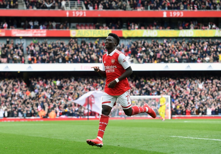 萨卡在英超中已经送出了10次助攻,他也是五大联赛首位助攻数上双的球员。