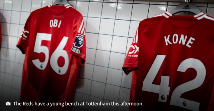 曼联替补:50-哈里森、2-林德洛夫、26-海文、41-阿玛斯、42-科内、55-弗雷德里克森、56-奥比、57-杰克-弗莱彻、64-穆尔豪斯