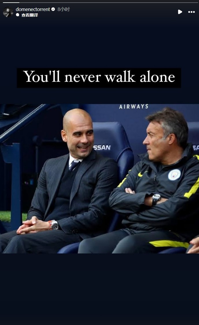 2月21日讯 曼城前助教多梅内克-托伦特今天在Instagram晒出自己与瓜迪奥拉的合照,并配文“你永远不会独行”。
