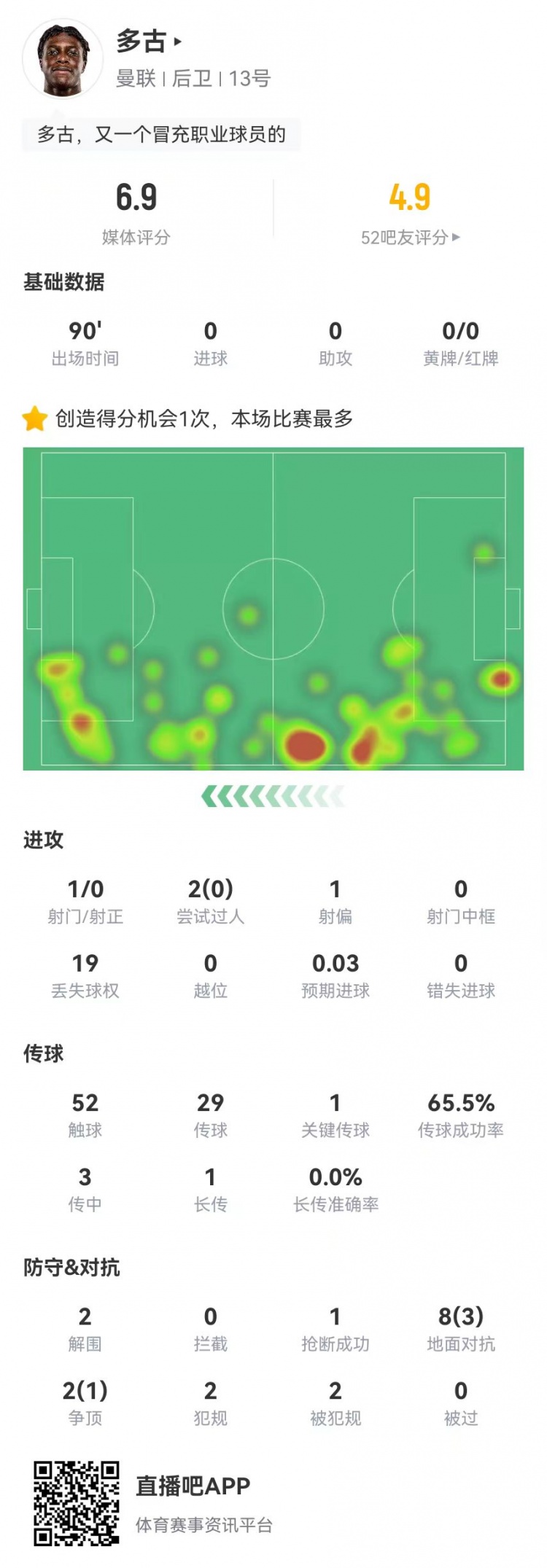 3月7日讯 曼联在本轮欧联杯1-1战平皇家社会,多古本场数据如下: