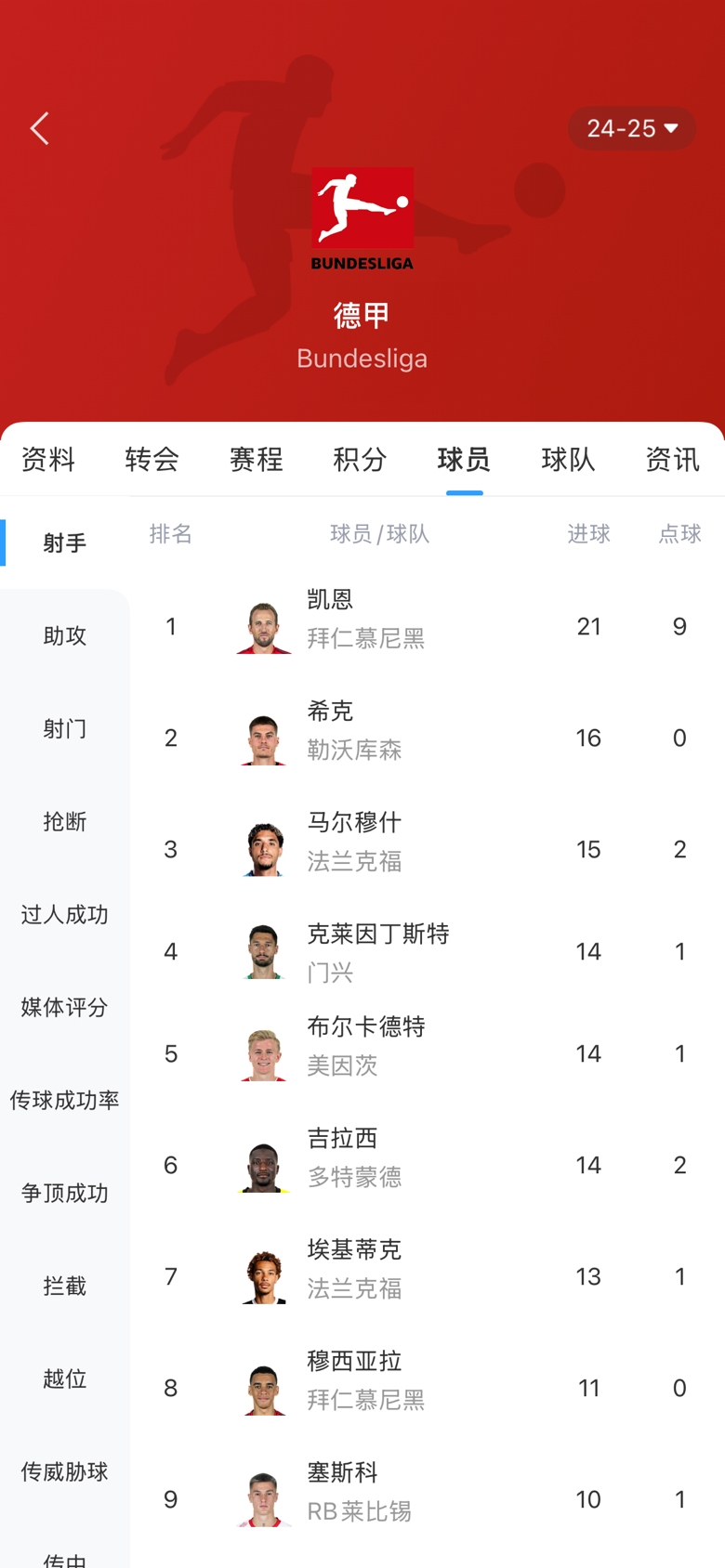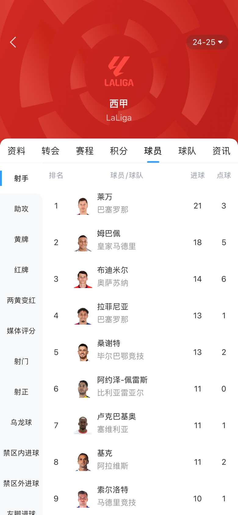 03月11日讯 德国转会市场统计显示,最新的欧洲金靴排名,萨拉赫大幅优势领跑。