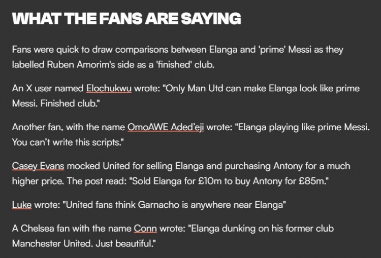 Elochukwu:只有曼联能让伊兰加踢得像梅西一样,这支红魔已经没救了。