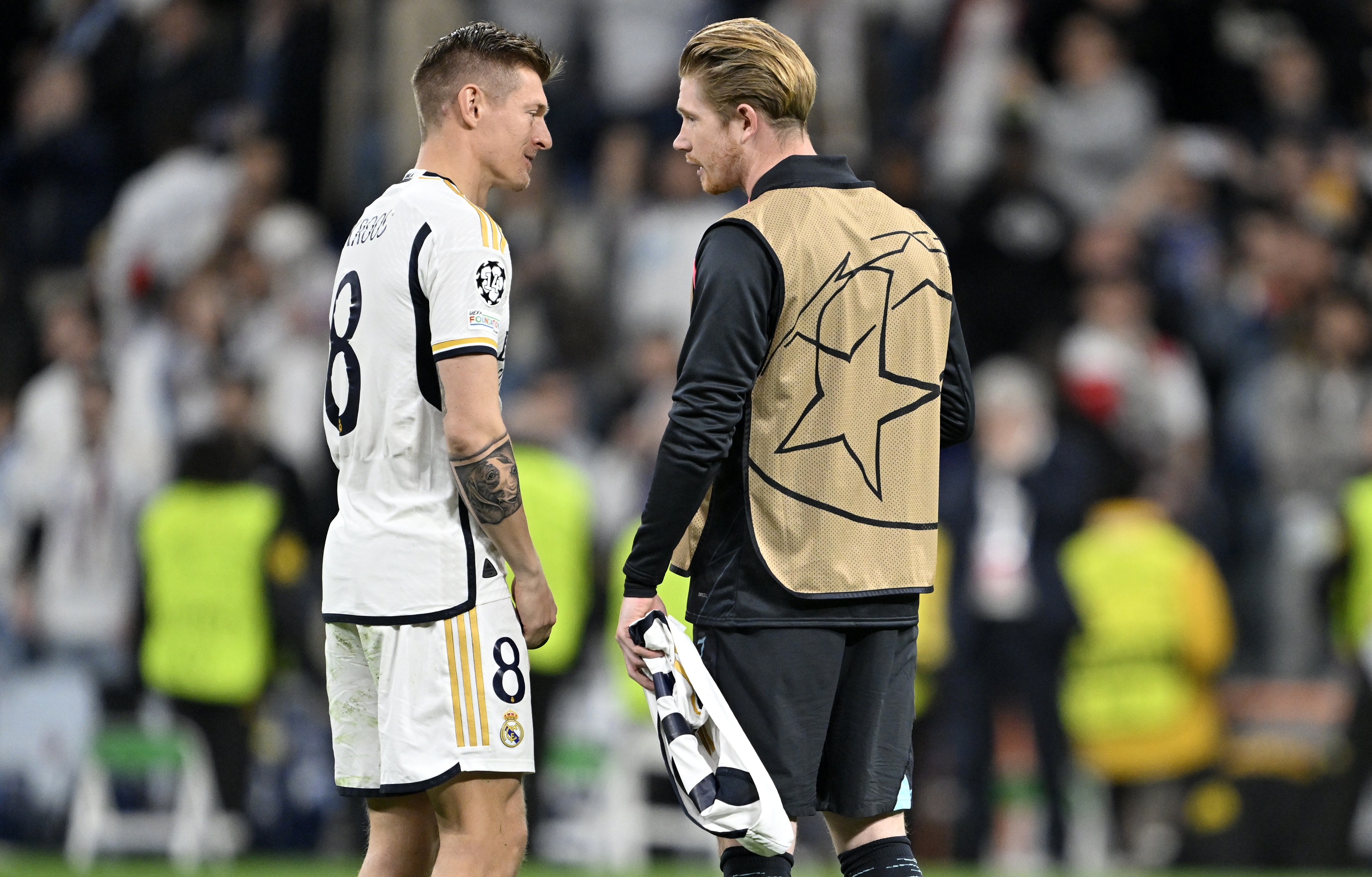 两位大师!35岁克罗斯致敬33岁德布劳内:特别的球员,祝福!