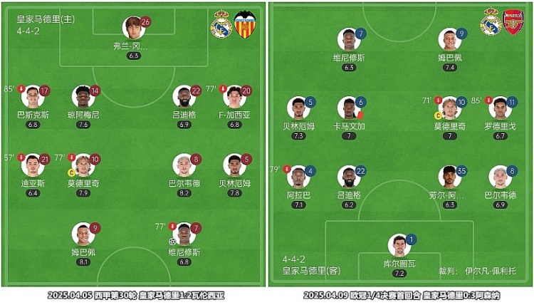 赖斯完成任意球双响之前,皇马曾经是更接近破门的一方。阿森纳开场后一度踢得比较拘谨,皇马虽然不具备整体持续高压能力,但通过一对一较量完成抢断是他们的优势。维尼修斯和贝林厄姆等人数人依靠个人能力打出转换进攻,可惜的是,姆巴佩连续错失门前良机,胜利的天平逐渐发生偏转。
