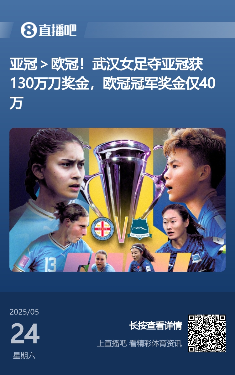 没想到吧,女足亚冠冠军奖金130万美元,比女足欧冠冠军还多