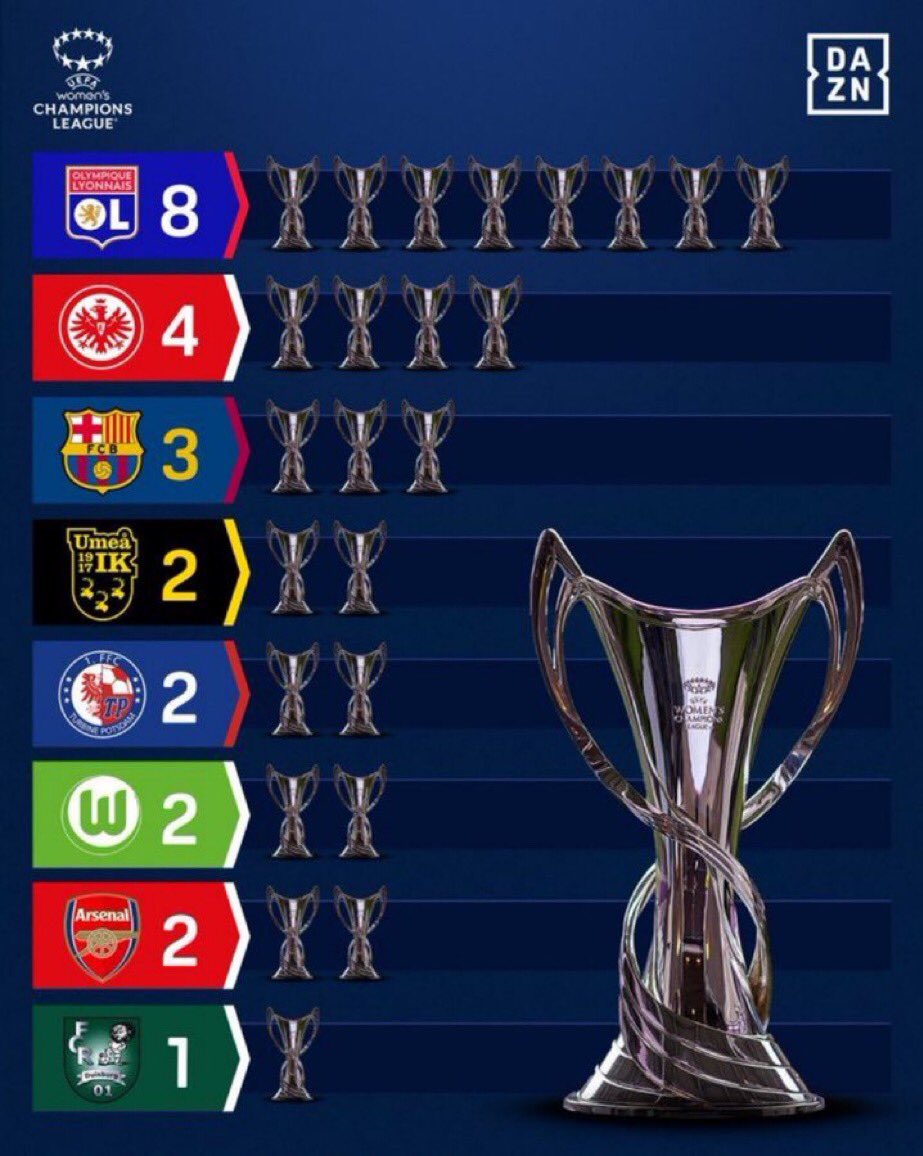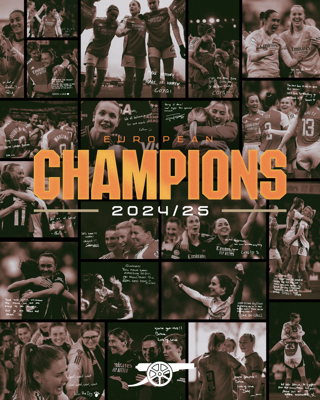 这可是阿森纳女足历史上第二座欧冠冠军了