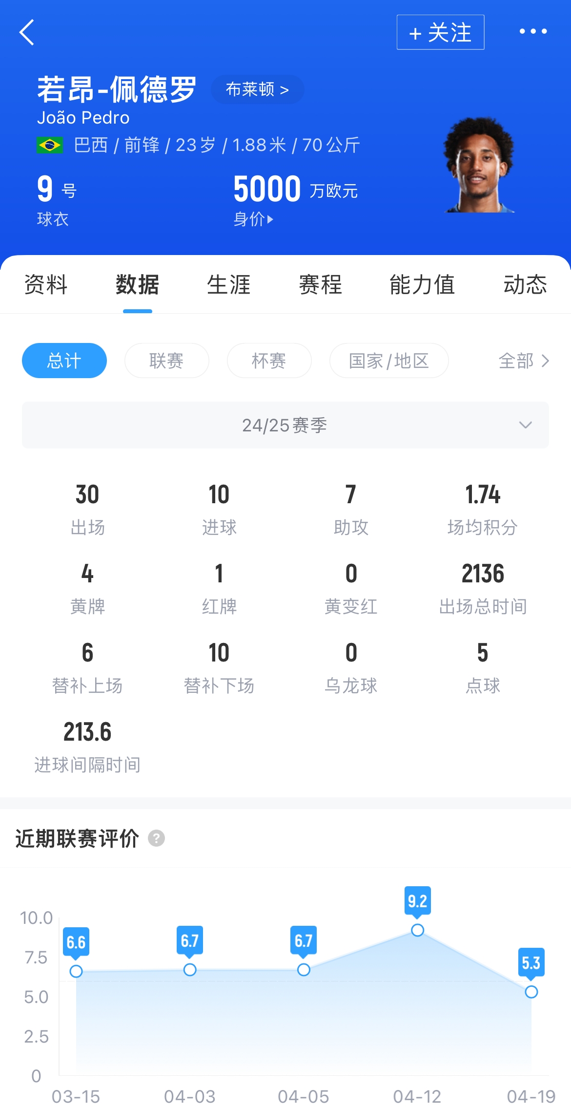 佩德罗现年23岁,巴西籍前锋。上赛季,他为球队出场30次,取得了10粒进球和7次助攻,目前其德转身价已达5000万欧元。