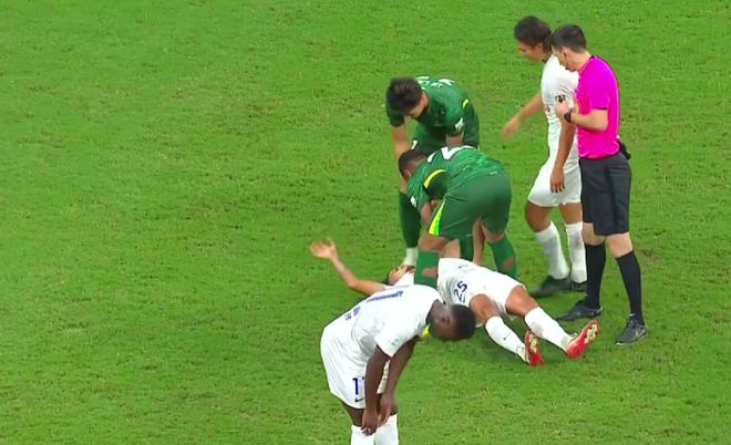 第7分钟,大连队在后场拿球后,朱鹏宇拿球一路前插,眼瞅着突破了曹永竞的防守,无奈之下,曹永竞采取了犯规处理,获得了本场比赛的第一张黄牌。曹永竞目前已经得到4张黄牌,一轮停赛。